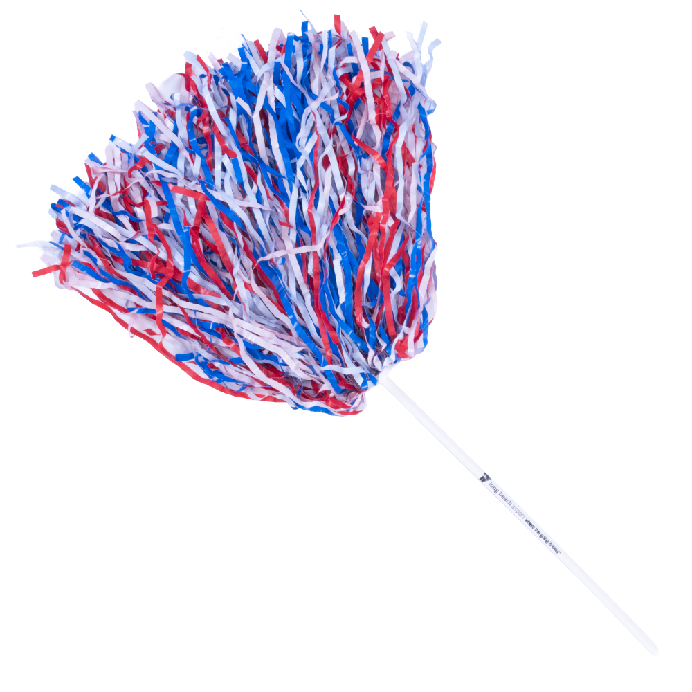 Our Rooter Poms are one of our most popular spectator pom, perfect for your next school, community or company event. Each pom features a 12” plastic safety stick handle with 500 12” plastic streamers attached using our patented shed-resistant welding system. You can imprint a cheer of slogan or sponsor on 1 side. Choose as many as 4 colors of streamers which are available in 24 team colors. Also available in streamer counts of 220 and 750. Made in the USA.